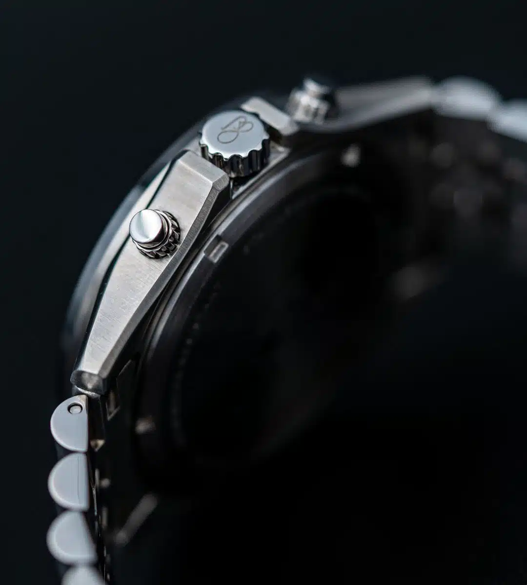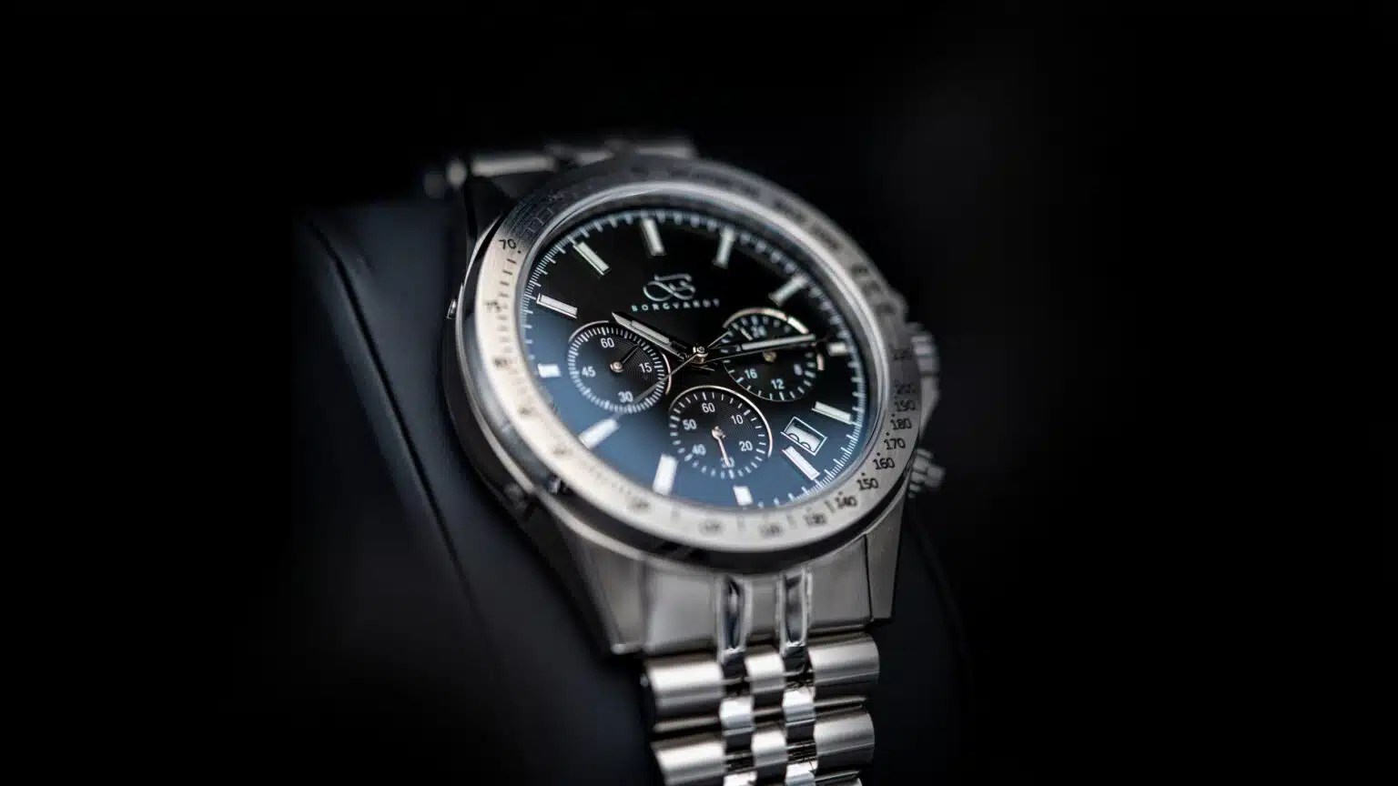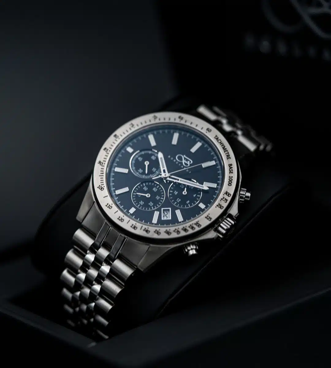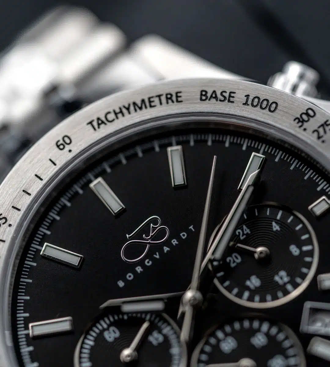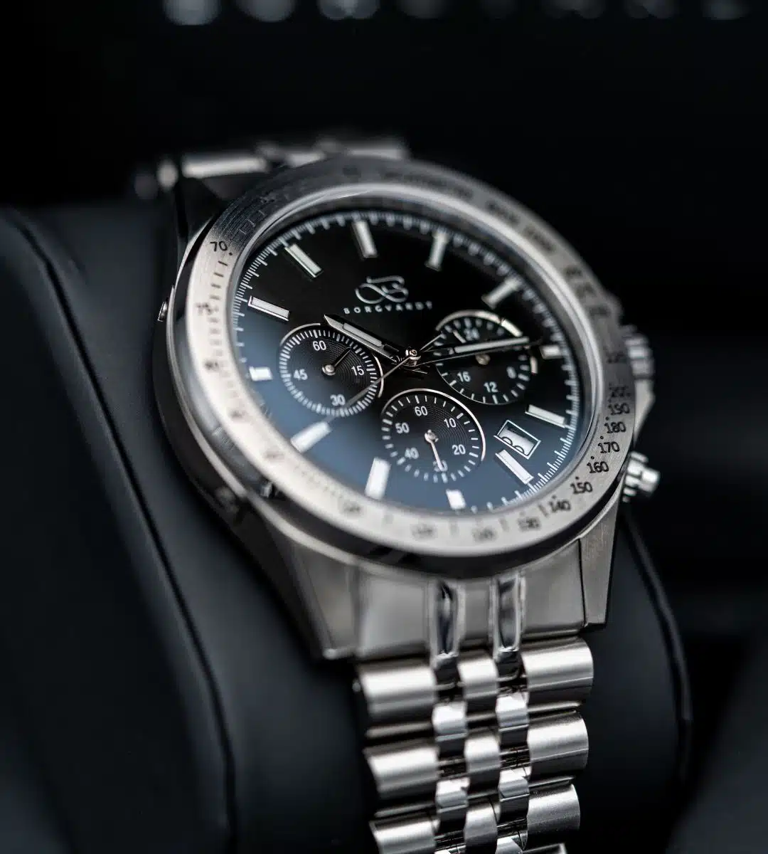 The solid steel case and matching bracelet give the watch a masculine presence, while the sapphire crystal protects against everyday scratches. Inside, you'll find a precise hybrid quartz chronograph movement that delivers on the second – every time. This is a watch that feels equally at home in the driver's seat of a classic sports car and under the cufflinks in a boardroom.