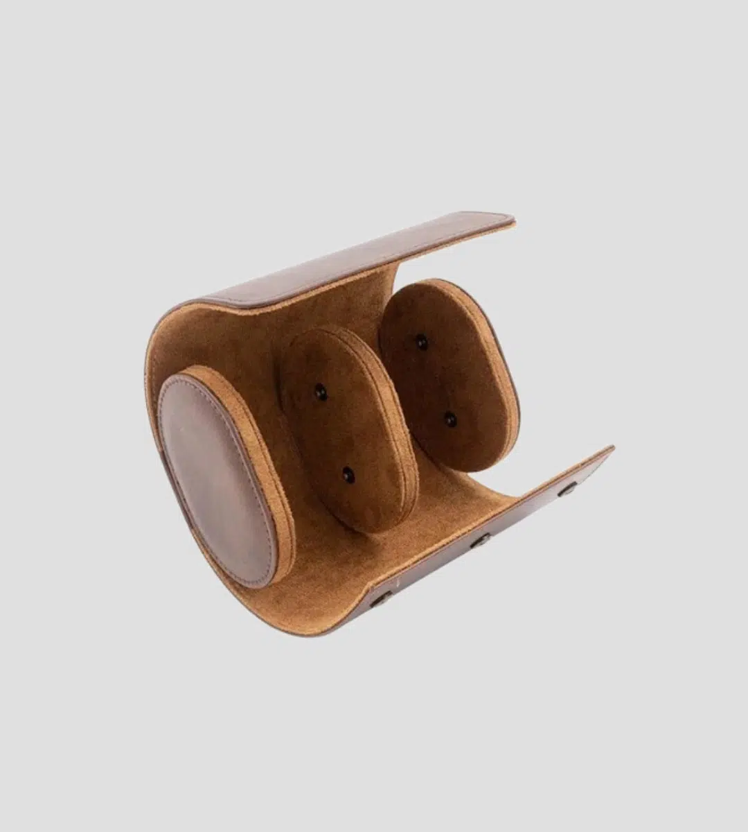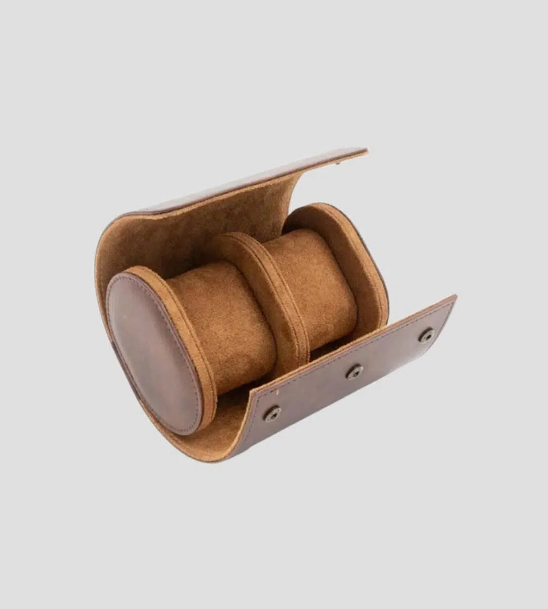This elegant travel case for two watches combines style and functionality, perfect for both storage and transport. The surface is covered with durable PU leather, while the soft imitation suede lining protects the watches from scratches. The insert, which contains yielding foam for optimal safety, is secured with four snap buttons, ensuring a stable position. When necessary, the insert can be easily released so that the watches can be handled with maximum comfort.