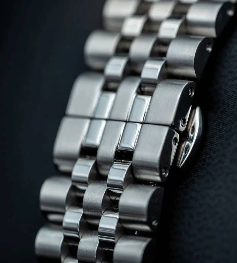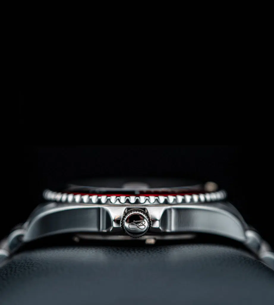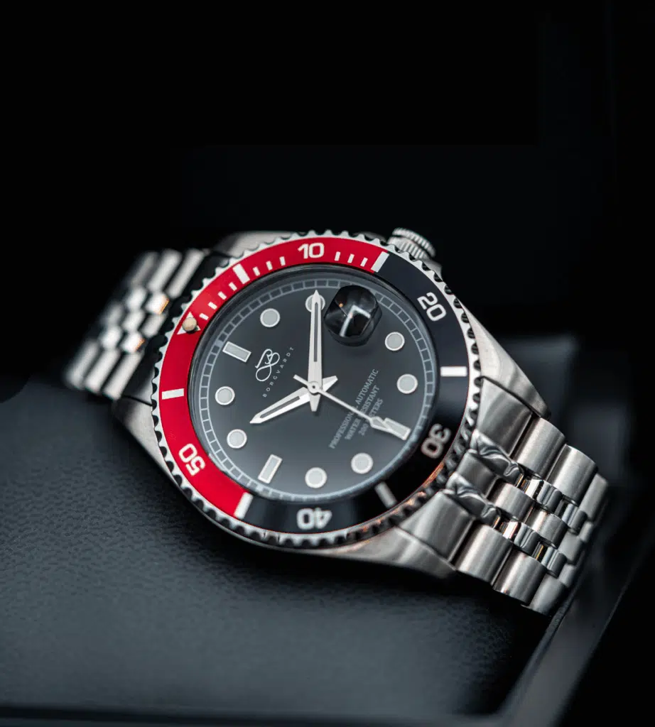 Det er udstyret med en keramisk bezel, der ikke kun tilføjer en luksuriøs finish, men også er ekstremt slidstærk og modstandsdygtig over for ridser – perfekt til både hverdagsbrug og krævende eventyr. De kraftige visere og indekser er belagt med luminescerende materiale, hvilket giver optimal læsbarhed under vandet og i mørke omgivelser